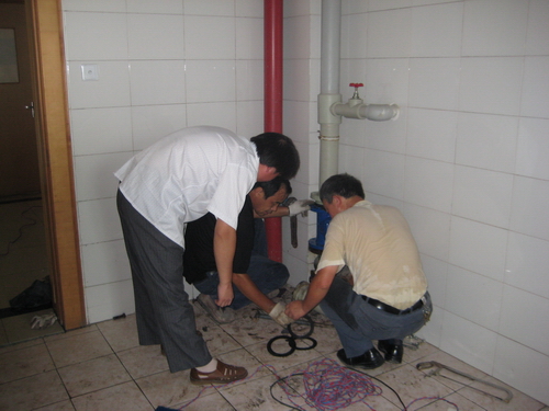 图2:后勤员工正在安装水表,进行水平衡测试