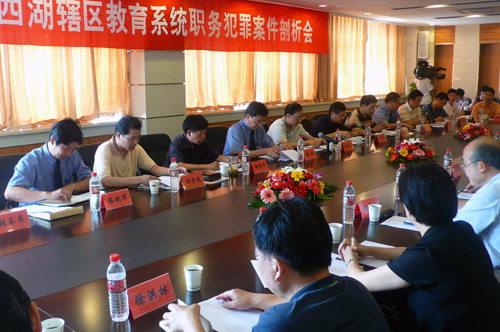 为贯彻落实党中央反腐败要“打防并举、标本兼治、从源头上治理”的精神,有效预防和遏制教育系统尤其是高等院校职务犯罪案件的再度发生,6月20日,杭州市西湖区人民检察院与浙江省教育纪工委在我校召开了杭州市西湖辖区教育系统职务犯罪案件剖析会。市西湖辖区内的各高等院校相关部门负责人共40余人参加了会议。浙江省教育纪工委书记赵关君、副书记陈金方,杭州市西湖区人民检察院检察长张鸣、省人民检察院职务犯罪预防处副处长张柏高等领导和负责同志出席会议并讲话。我校党委书记徐志平到会致辞、副书记胡浙平出席会议。