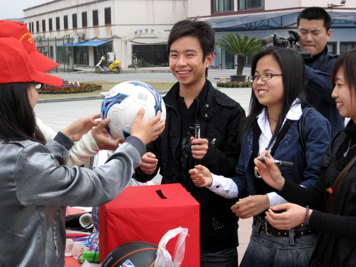 我校信息学院的同学到山区支教时发现,山区学校体育器材、设备短缺,有些学校甚至没有一块像样的操场,但山区孩子渴望体育活动的心和城里的孩子一样,他们渴望能打一场篮球,踢一个真正的足球。信息学院的同学们回校后就想着要为山区的孩子做点什么,和校青年志愿者协会一协商,这场阳光操场爱心募捐活动就开始了。活动现场,许多同学有“球”出“球”,有钱出钱,还有一些老师也慷慨解囊。校党委书记徐志平也来到现场,他亲切地嘱咐志愿者们一定要完整地将这些体育用品和捐款交到山区孩子们手里。