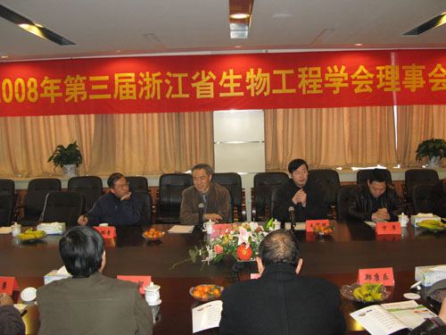 省生物工程学会理事、我校生化学院院长毛建卫介绍了由生化学院承担的浙江省农产品化学与生物加工技术重点实验室研究方向和特色,得到了与会专家的充分肯定。会议还规划了浙江省生物工程学会未来四年的发展目标及2008年学术和社会服务工作。
