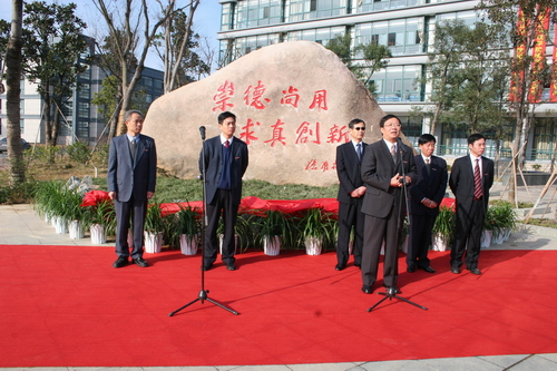杜卫发表了热情的讲话。他说,“崇德、尚用、求真、创新”的校训集中体现了我校的办学理念,体现了“学以致用,全面发展”的应用型人才培养教育思想观念。日前,全国人大常委会副委员长、中国科学院院士路甬祥欣然为我校题写了校训,这大大鼓舞了全校师生。希望全校师生不断追求、不断创新,将“崇德、尚用、求真、创新”的精神不断升华、发扬光大。