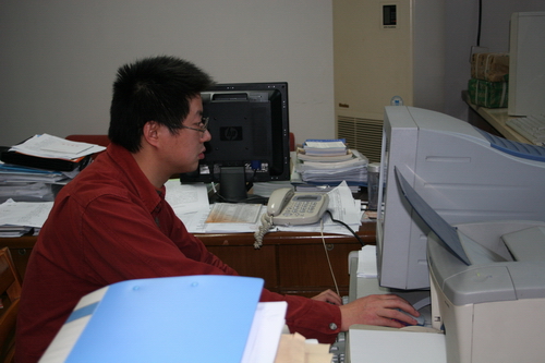 下午四点多,我来到了实验室与设备管理处王德栋老师的办公室准备采访他,进去时他正在接电话,等他说完电话,我简单的自我介绍和说明来意,电话又响了,在接下来的短短20多分钟里,王老师又接了3、4个电话,听他说话的内容,似乎大家问的都是差不多的问题,他一直很有耐心地解释。他笑着和我说:“呵呵,有时接电话接的水都来不及喝一口。”