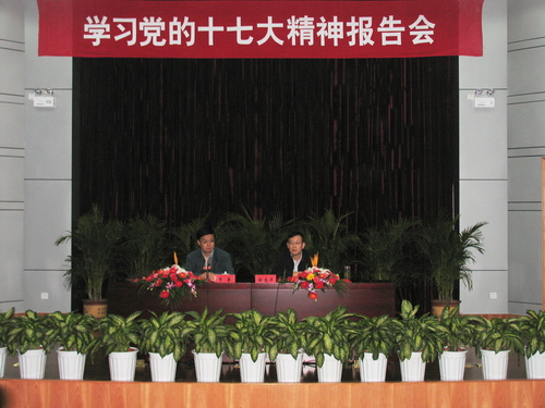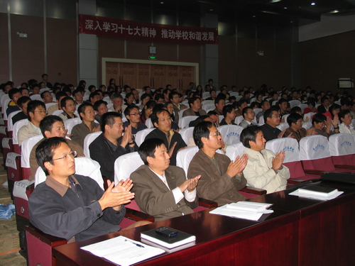 10月30日,学校在图书信息大楼学术报告厅举行学习十七大精神报告会。十七大代表、浙江师范大学党委书记李鲁为我校师生传达了中国共产党第十七次全国代表大会精神。