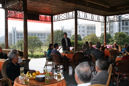 陈浩代表学校党政向老同志们表示亲切的问候,向7对金婚夫妇致以美好的祝福。他感谢老同志们为学校发展作出的贡献,祝他们健康长寿,生活幸福。