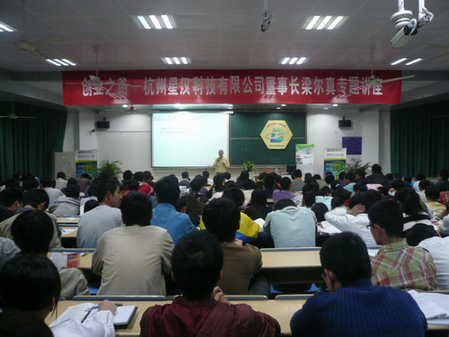 10月22日晚,我校第十五期“优秀企业家进校园”活动举行,杭州星汉科技有限公司董事长梁尔真应邀来校指点学子创业。本次活动得到了团中央光华科技基金会、诺基亚青年创业教育计划的大力支持。校党委副书记陈浩出席报告会并讲话。中国光华科技基金会创新办项目部副主任张丽琼及校团委、信息学院党总支、经管学院党总支负责人、部分二级学院分团委书记、大学生KAB俱乐部等300多名师生聆听了报告。