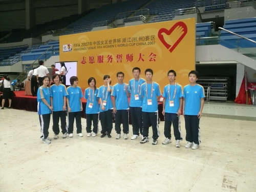 2007年女足世界杯即将在我国拉开战幕。9月1日,女足世界杯浙江(杭州)赛区志愿者誓师大会在黄龙体育中心隆重举行。包括我校志愿者在内的687名志愿者参加了大会。
