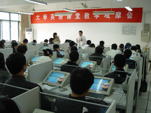 会前,与会人员观摩了《大学英语》课程的现场教学。