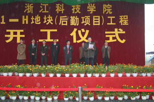 西湖区区委书记许迈永代表西湖区四套班子对我校后勤项目的开工表示最热烈的祝贺。他说,浙江科技学院自建校以来,一直在西湖区扩大、提高、发展,为国家培养了大量的应用型人才。长期以来,区校之间一直本着互惠双赢的原则进行全方位合作。他说,浙江科技学院后勤项目的开工将为学校的进一步发展打下更为坚实的基础。而学校的发展将对西湖区的发展也起到积极的促进作用。西湖区将一如既往的支持浙江科技学院,也衷心希望区校之间能通过双方的努力取得共同的发展。