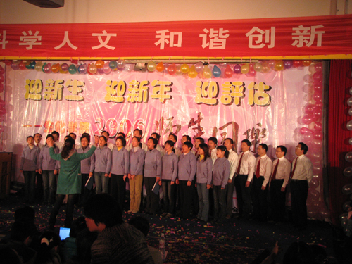 胡副书记的毛主席诗朗诵《沁园春•雪》,慷慨激昂,更是搏得了师生们阵阵掌声和伴诵声,把活动气氛推向了新的高潮。师生们引人入胜的乐器联奏,龙虎声威的跆拳道表演,激情洋溢的歌曲联唱,充满民族风情的傣家竹竿舞和天竺少女舞,引人深思的情景剧……精彩的表演,令人目不暇接,也使晚会高潮迭起,众多艺术形式融为一炉,充分展示了生化人的青春活力和文化底蕴。演员们释放激情尽显个性,整场晚会其乐融融。最后全体师生激情合唱《同一首歌》,晚会落下帷幕。