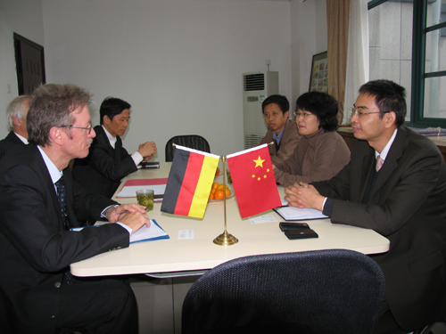 会谈期间,双方就扩大学生交流,特别是德方高校在学位制度改革后两校之间联合培养本科生等事项进行了商谈。龚副校长向来宾详细介绍了我校招收外国留学生来华进行课程学习、专业实习和语言培训等一系列留学形式以及为此所作的工作。此外,双方对加强开展项目教学合作进行了深入的交流和探讨。