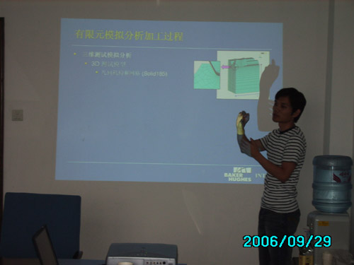 2000级材料专业、2003年赴德国汉诺威应用科技大学机械系学习的毕业生何鹏同学就题为“螺纹连接冷挤数字模拟FEM模块设计”的论文进行了全面的介绍和汇报,并认真回答了与会专家评委提出的有关问题。评委们经过认真的评议后一致认为:何鹏同学的论文选题切合实际,阐述的内容、研究的范围和深度以及论文的总体质量均达到了较高的水平,完全符合本科毕业生的论文要求,决定通过何鹏同学的论文答辩。