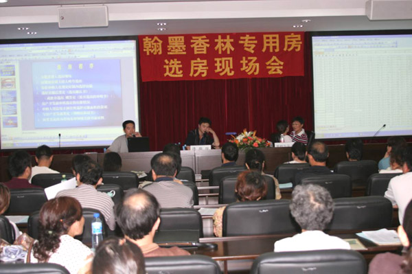 这是学校有史以来规模最大的教职工专用房选房工作。产业后勤管理处本着“公开、公正、公平,服务教职员工”的原则,在学校住房领导小组和教代会住房福利小组的全程监督下,采用电脑选房、大屏幕显示、预付购房款、当场签订预购协议书的方式,第一时间在校园网上公布选房结果,让教职员工及时了解选房动态。