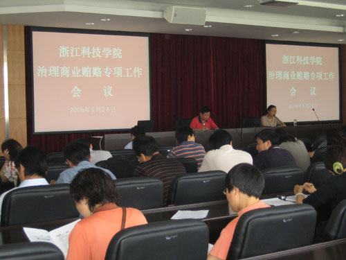 根据上级有关治理商业贿赂的部署和要求,我校于2006年5月24日上午召开了治理商业贿赂专项工作会议。校纪委书记、校治理商业贿赂专项工作领导小组副组长鲁凤同志进行了动员部署。鲁凤书记结合高校近年来在商业活动中发生的一些贿赂案件,进行深刻剖析,强调了治理商业贿赂的重要性和必要性,并明确我校治理商业贿赂专项工作的范围、重点、要求和具体工作安排。她说,商业贿赂违背公平竞争的市场原则,破坏社会主义市场经济秩序,损害人民群众的切身利益,毒化社会风气,已经成为社会经济活动中的一个突出问题和滋生腐败的重要因素。她要求各单位、部门的领导高度重视治理商业贿赂工作,扎实有效地做好自查自纠工作,规范我校各种商业活动,维护广大师生的根本利益,推进学校反腐倡廉工作。各党总支书记、直属支部书记、机关各部门负责人、直属单位负责人、二级学院办公室主任、实验采购中心主任及学校重岗重职部门有关人员共60余人参加了会议。