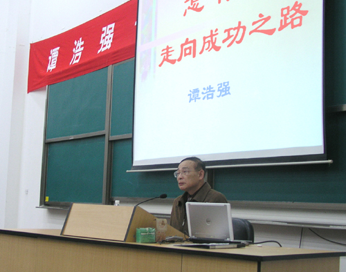 “祖国当时特殊的国情造就了我的成功,我的责任就是要让祖国富强起来”,“要甘于平凡,但不要平庸”,“机遇对于每一个人都是平等的,但不是每一个人都能把机遇变成现实”,“要成功,就要准备失败,没有挫折的经历不是完整的经历”……4月24日晚,我校的报告厅内座无虚席,两边的过道和门口也站了不少同学。我国著名计算机教育专家谭浩强教授正在这里作“怎样走向成功之路”的主题演讲。