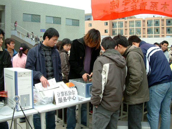 3月4日中午,“三.五”志愿者服务启动仪式在学生社区隆重举行。在《学习雷锋好榜样》的嘹亮歌声中,信电系学生姚生亮同学代表全体青年志愿者宣读了“参与志愿服务,构建和谐校园”的倡议书。院党委副书记胡浙平面对几百名志愿者发表了热情洋溢的讲话。他鞭策青年志愿者进一步弘扬雷锋精神,倡导时代新风,为我校的繁荣发展做贡献。仪式结束后,“绿色环保,洁美校园”及志愿服务进公寓,特色服务一条街等活动同时启动。上千名志愿者开展了自行车维修、手机清洗、室内装潢设计咨询、秀发保养与护理咨询、义务搬运矿泉水、美容保健咨询、健康饮食咨询、免费摄影、普法宣传等几十项活动。院党委副书记胡浙平同学校有关部门负责人及各系分团委负责人兴致勃勃地参观了特色服务街……。除校内的活动,今年学校还专门组织了4支公益性服务队伍奔赴敬老院、留下社区、聋哑学校等地方,开展环保宣传、社区服务、敬老助残,义务家教等活动。