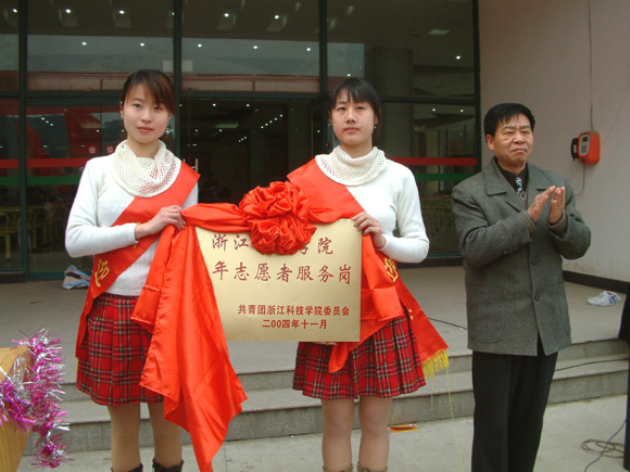这一天,胡副书记在学生社区为“浙科院青年志愿服务岗” 揭牌,今后将在这里设长期服务点,在“奉献,友爱,互助,进步”的志愿者旗帜下,我校共青团员将用他们的智慧和勤劳,把文明和进步献给社会,用他们的才华和友爱给需要帮助的人送去欢笑和希望。