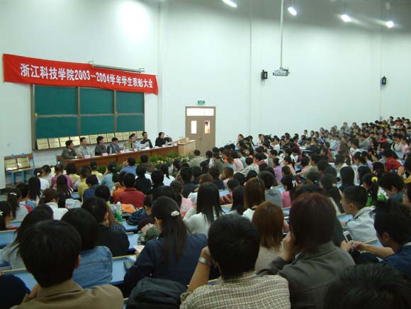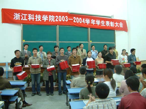 副院长龚建立宣读了《浙江科技学院关于表彰2003-2004学年特优学风班、优良学风班的决定》、《浙江科技学院关于表彰2003-2004学年三好学生和奖学金获得者的决定》。校团委书记王静宣读了《共青团浙江科技学院委员会关于表彰2004年暑期社会实践先进集体和先进个人的决定》。