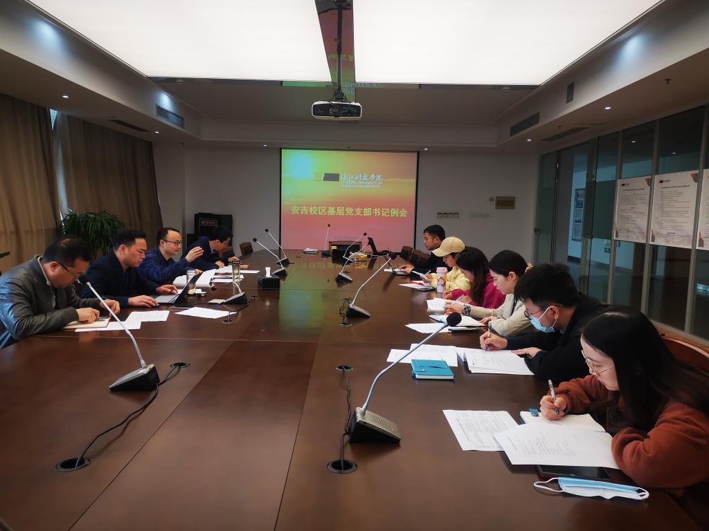 近日,安吉校区党总支召开基层党支部书记例会。校区党总支书记、党总支组织委员、党支部书记参会,会议由安吉校区党总支书记刘发明主持。